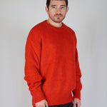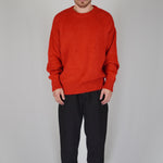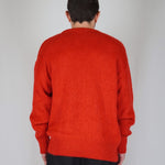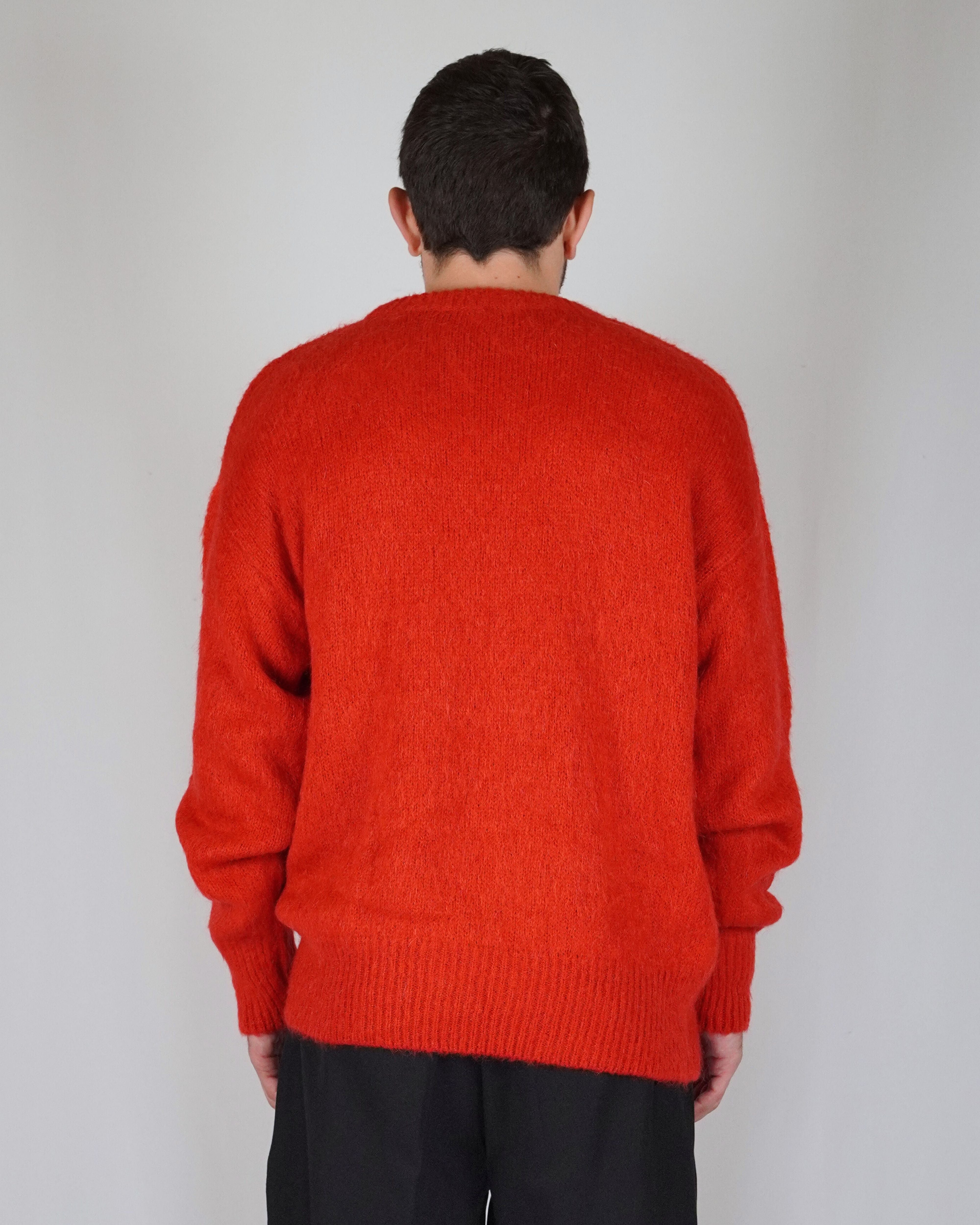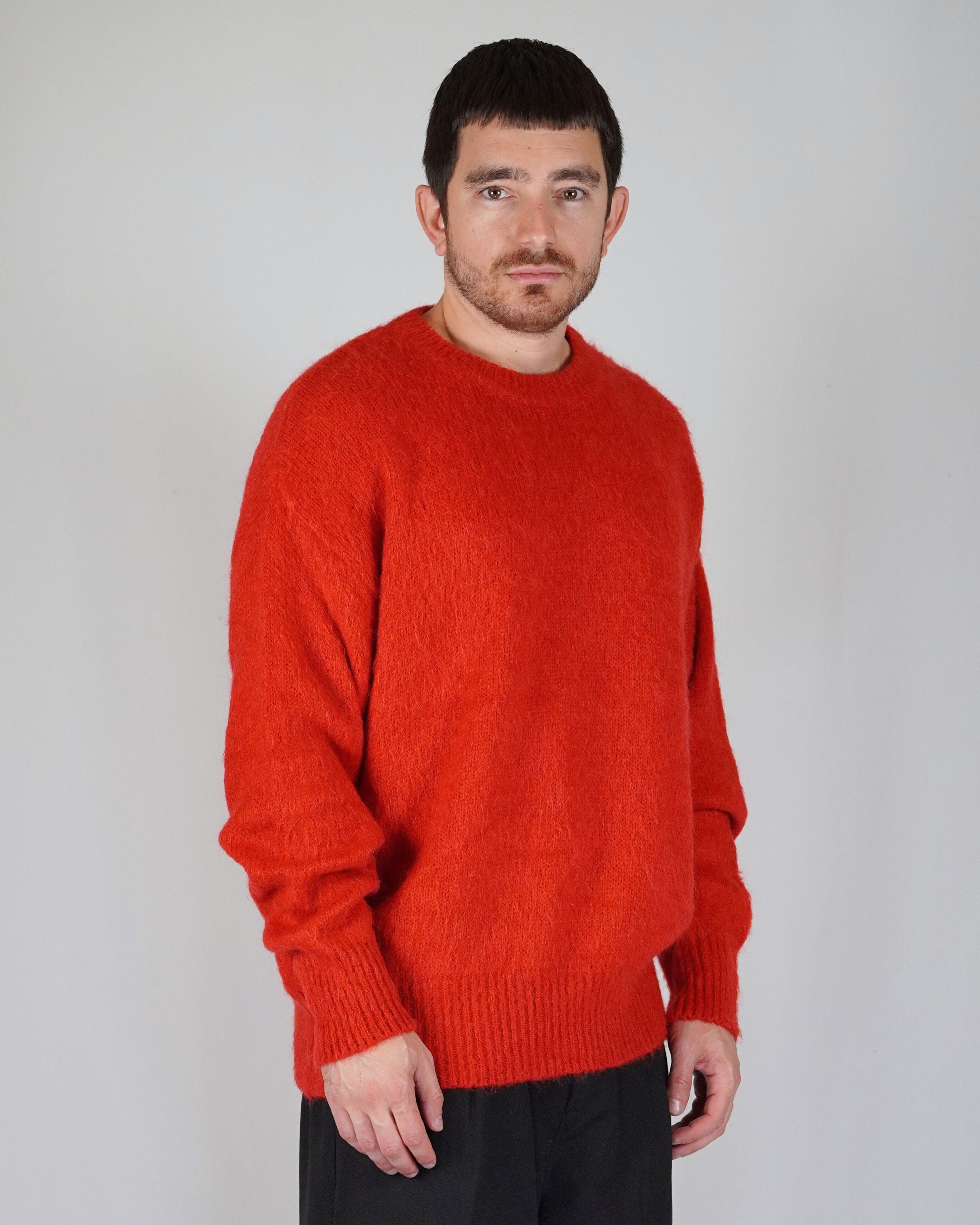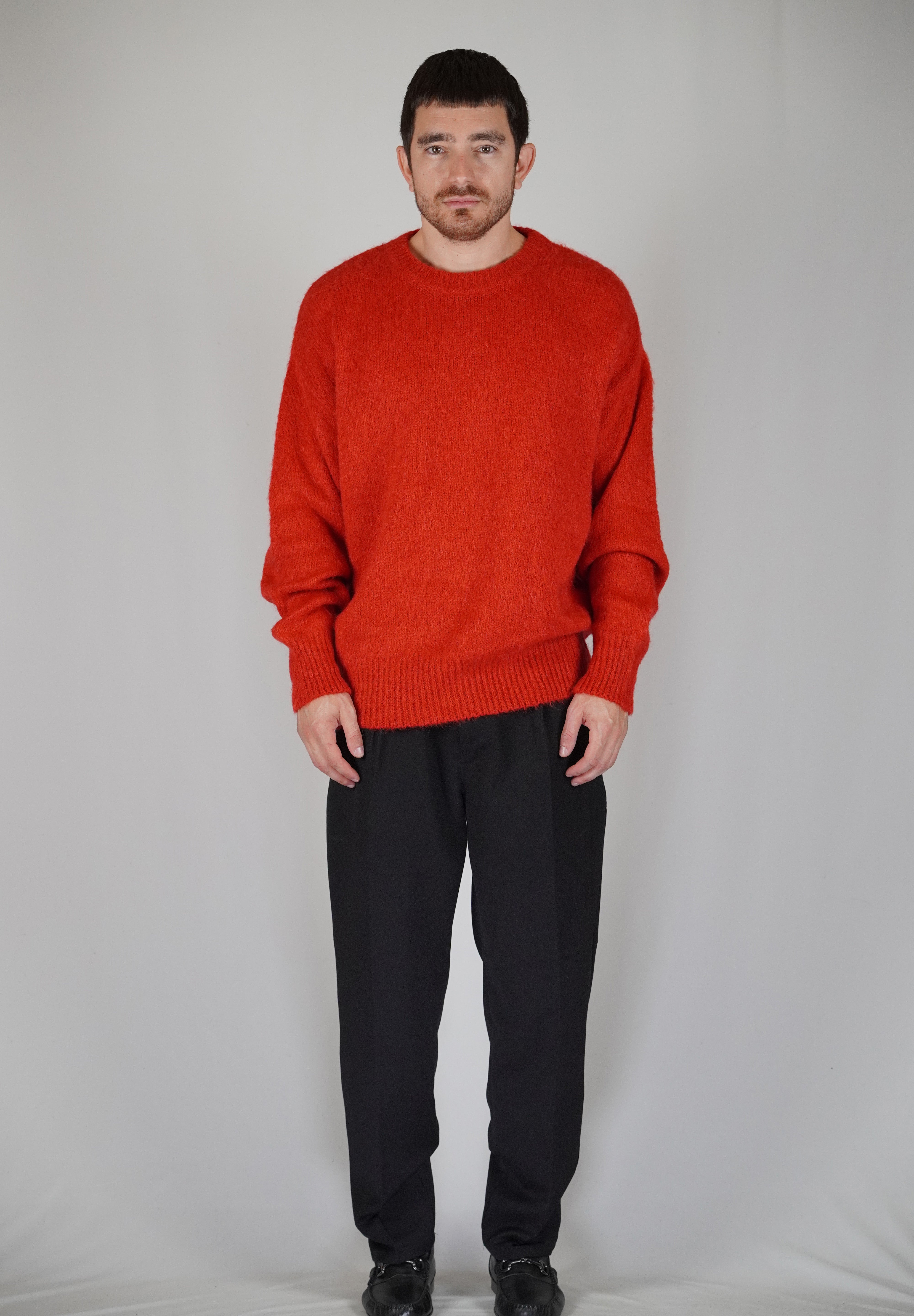 Balloon volumes, comfortable, as a tribute or more simply to pay homage to the 90s. The pastel red gives dynamism and character to the garment, giving it character and uniqueness. The mohair gives light and elegance to the garment.