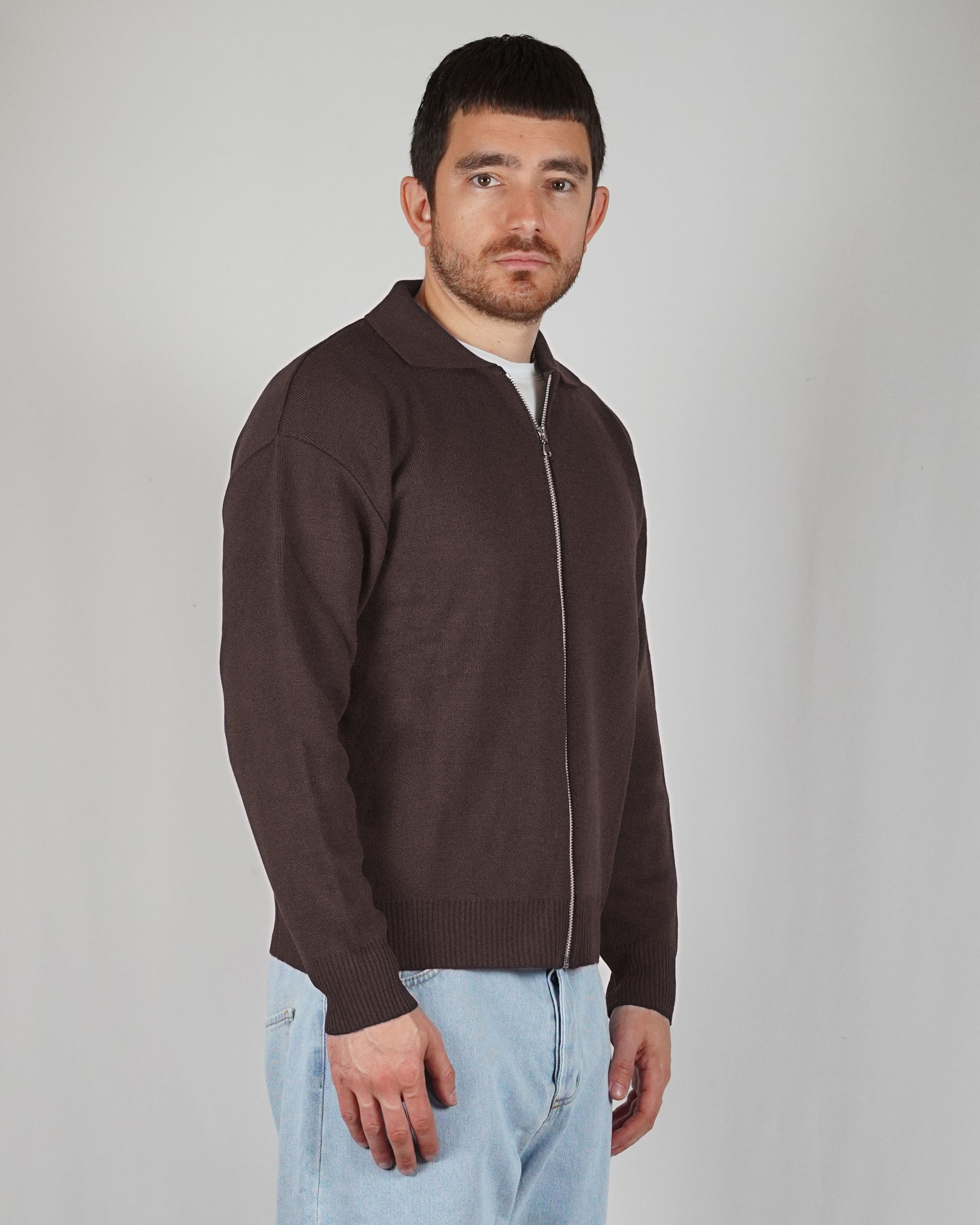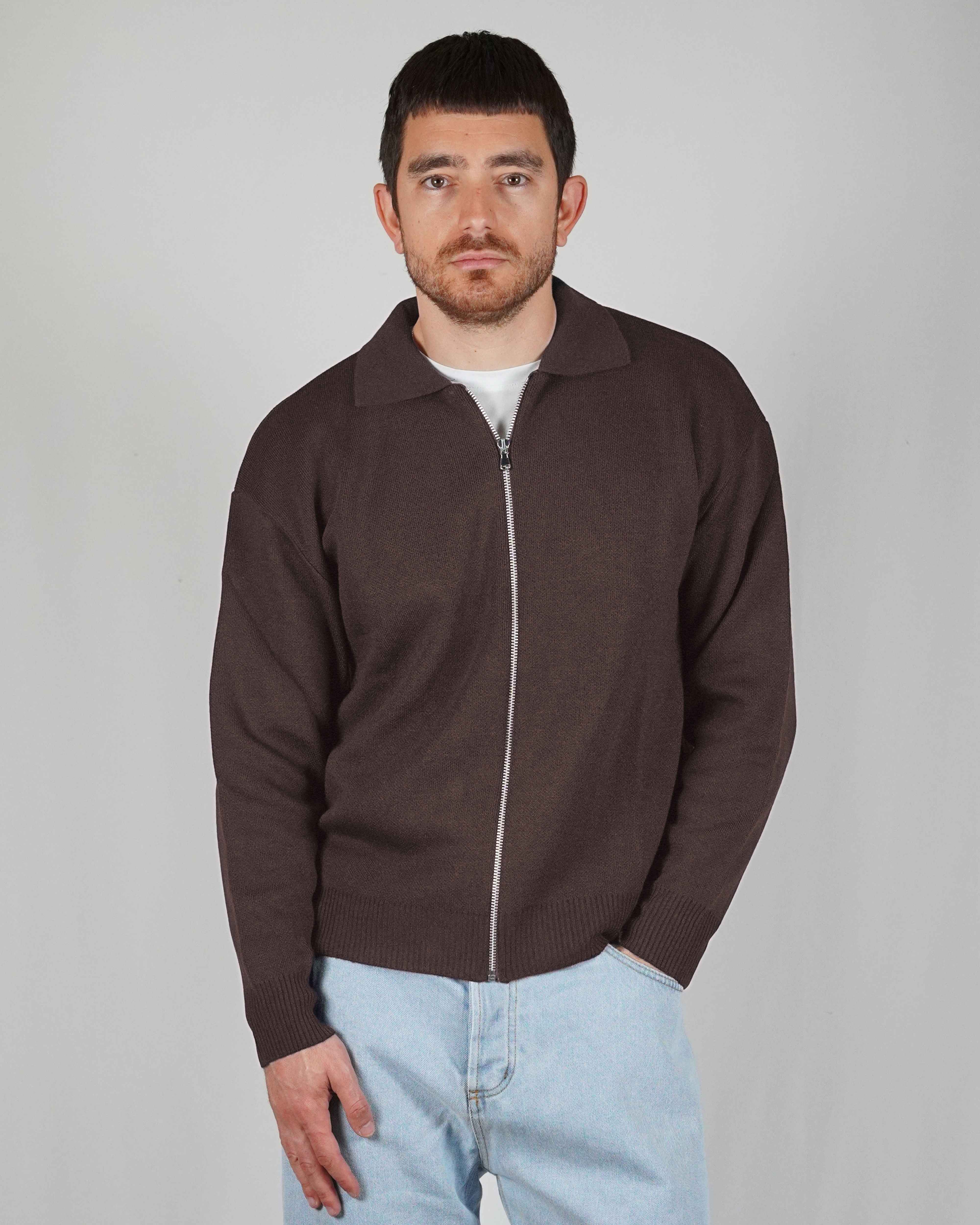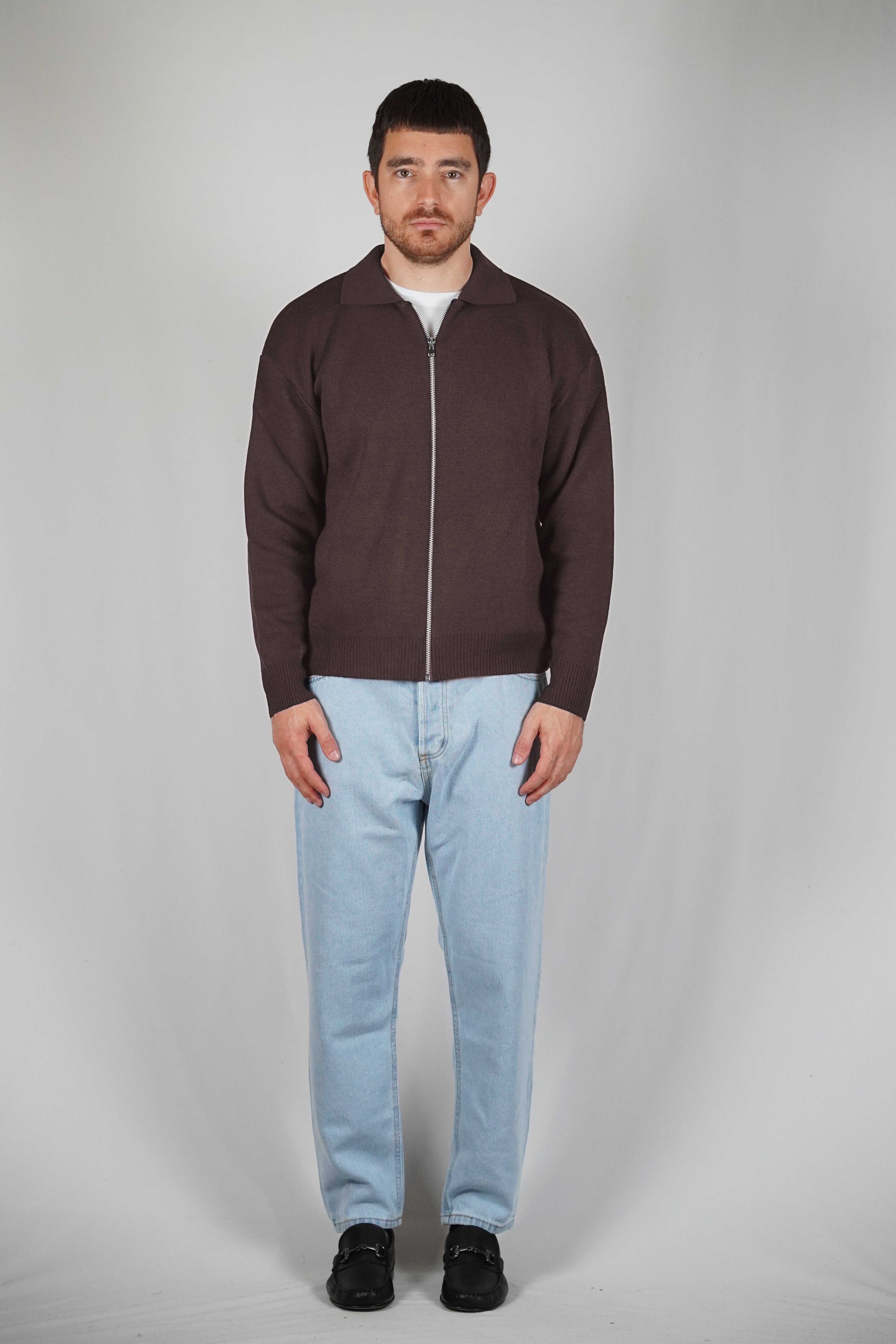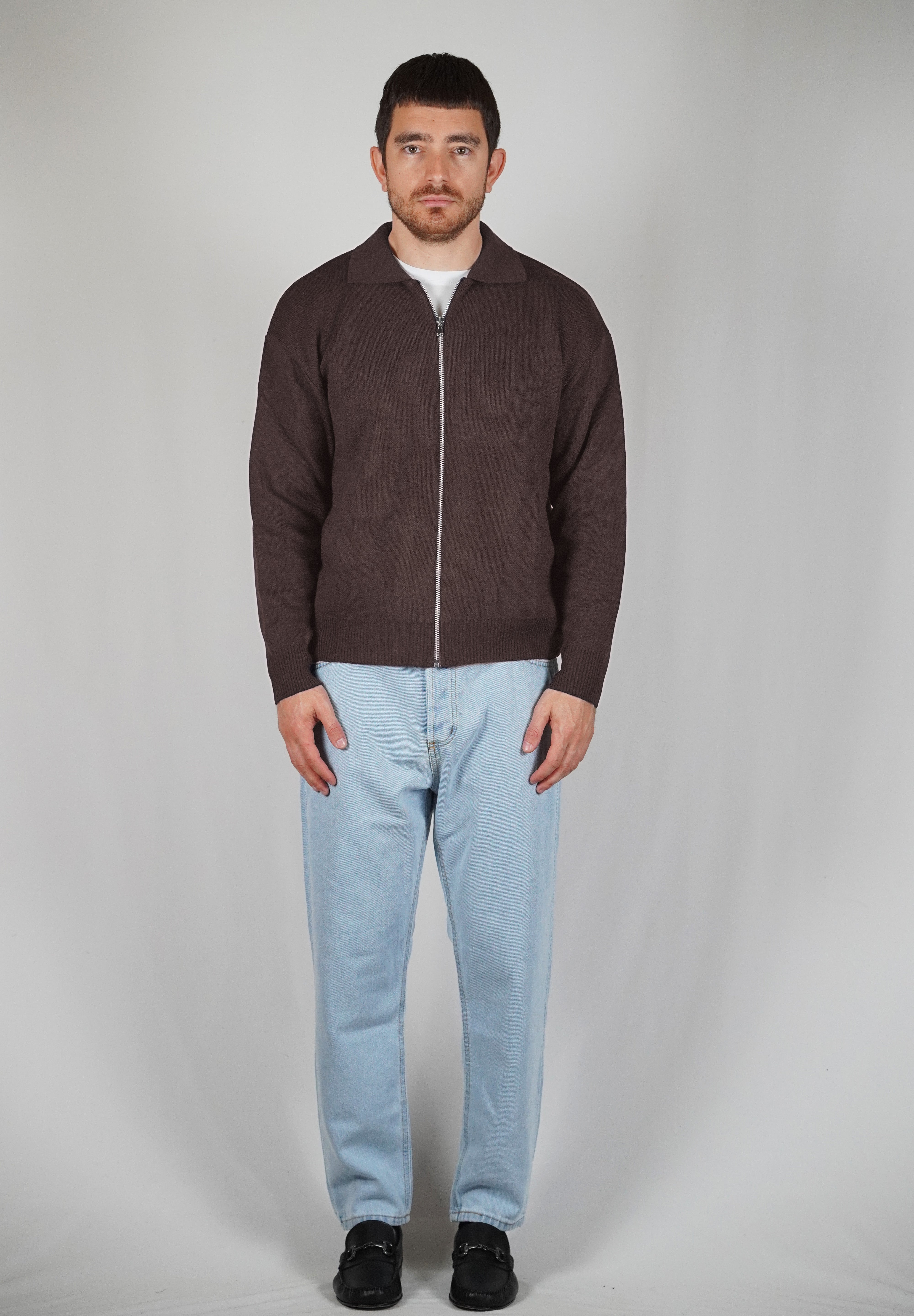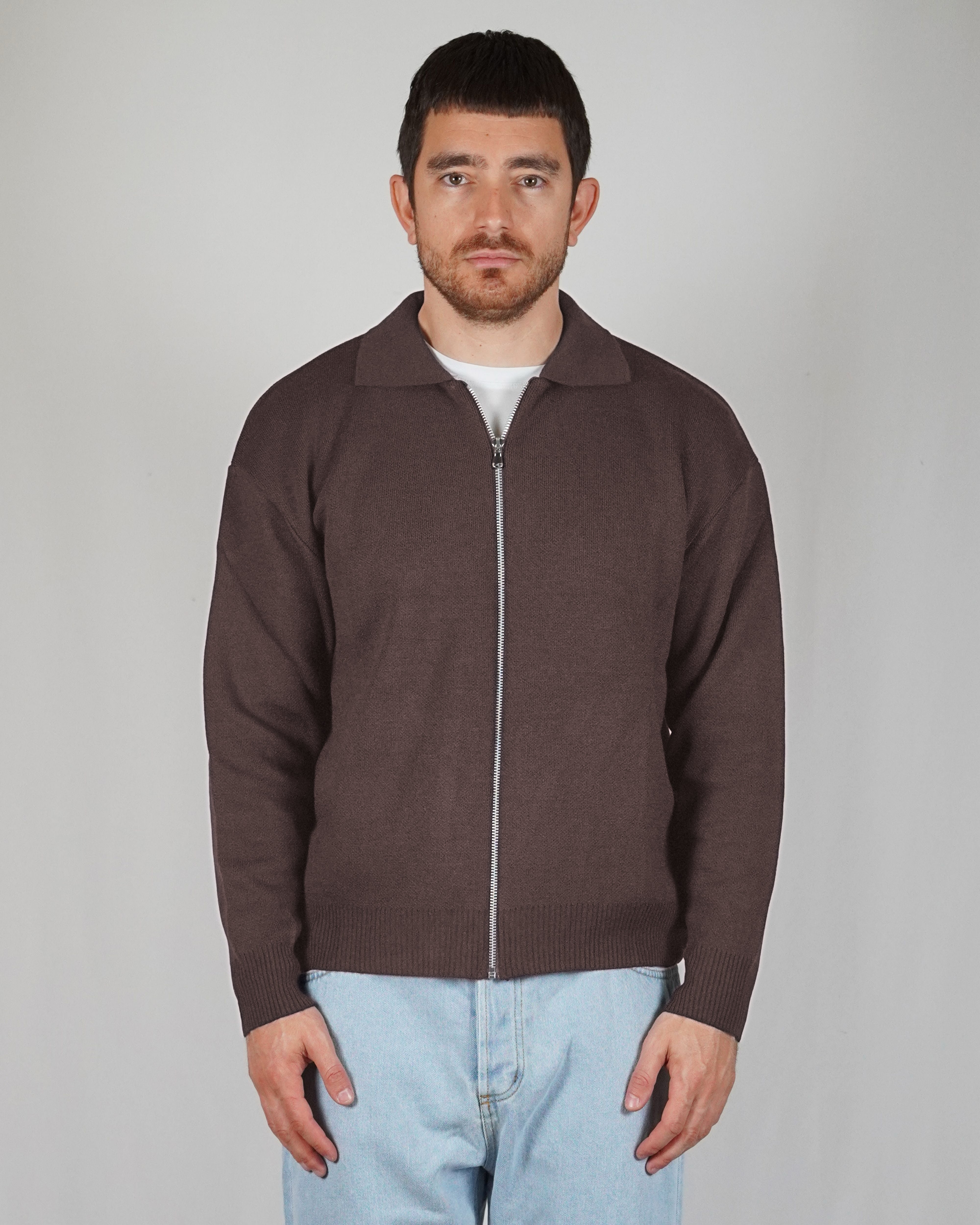 The sand color gives refinement to the garment. The breaks on the ends of the sleeves and on the give it dynamism. The regular, soft volume marries perfectly with the weight of the wool that composes it.
