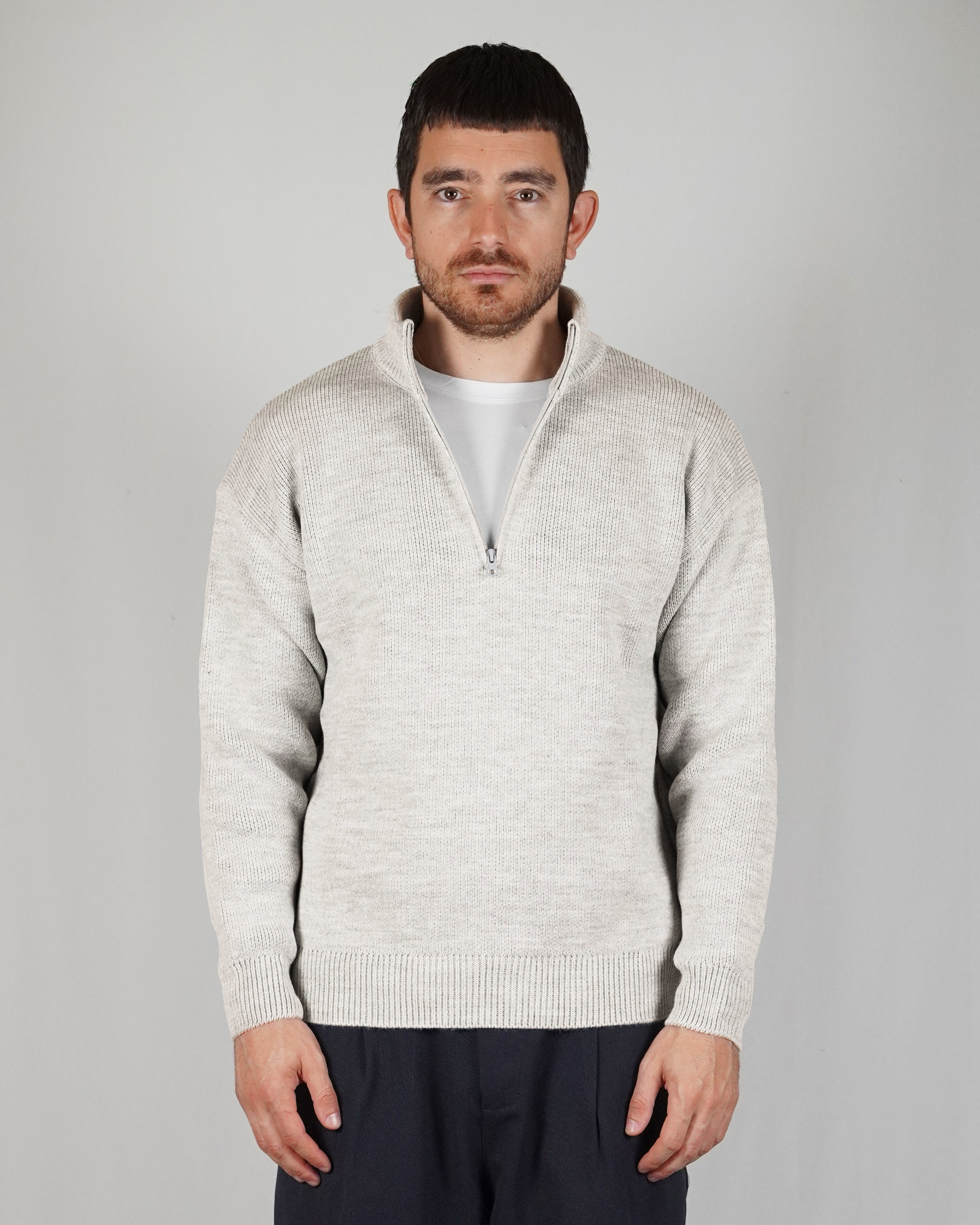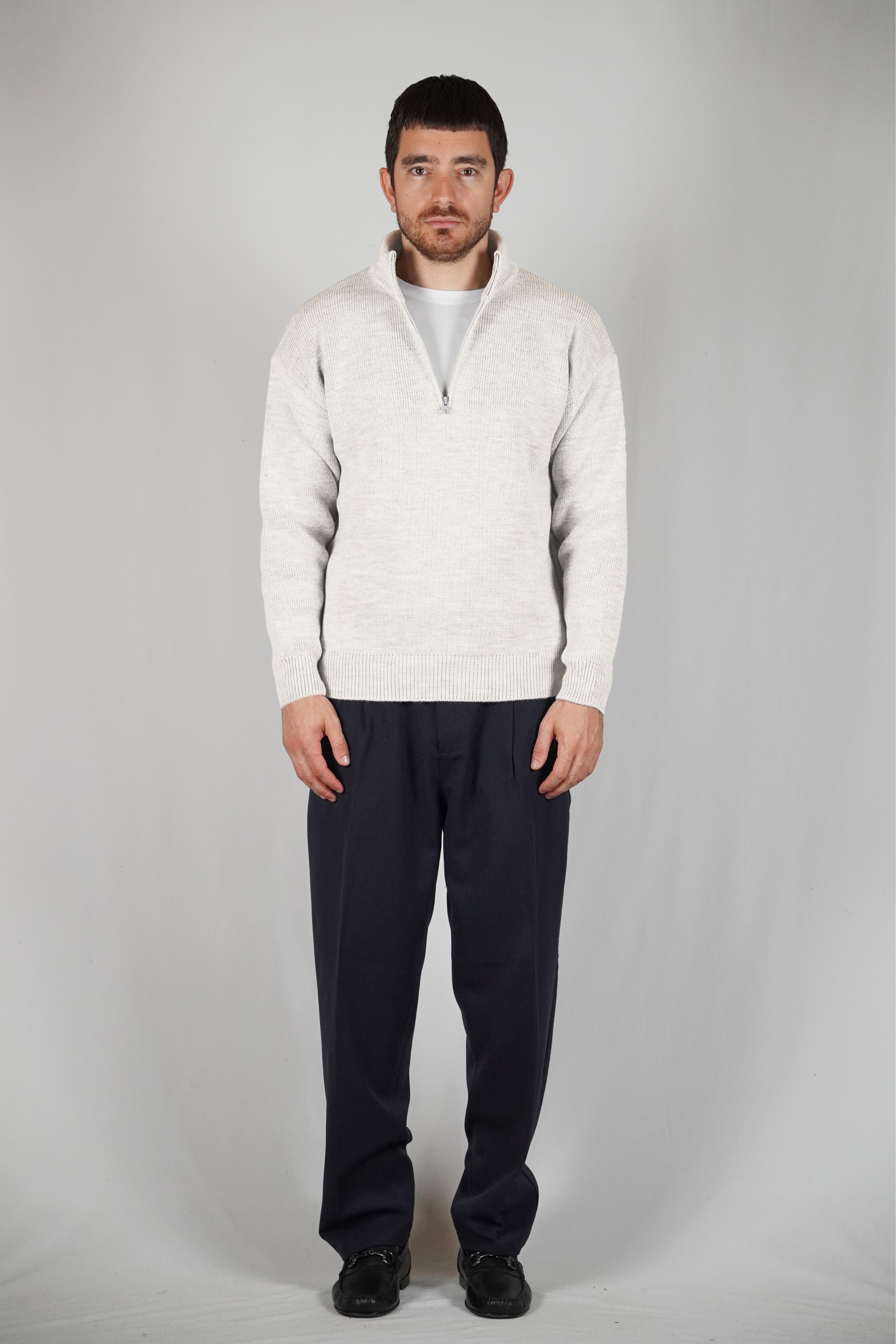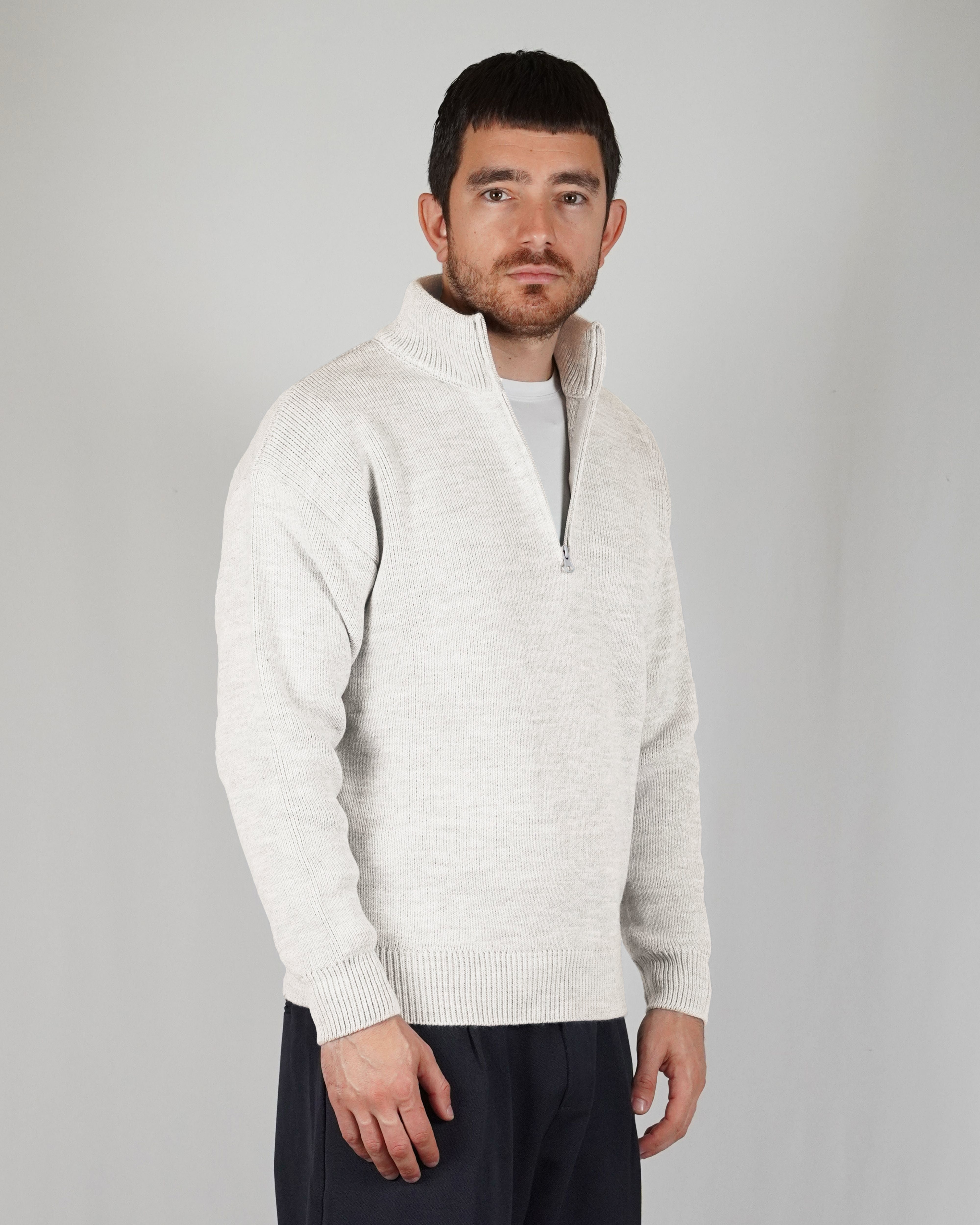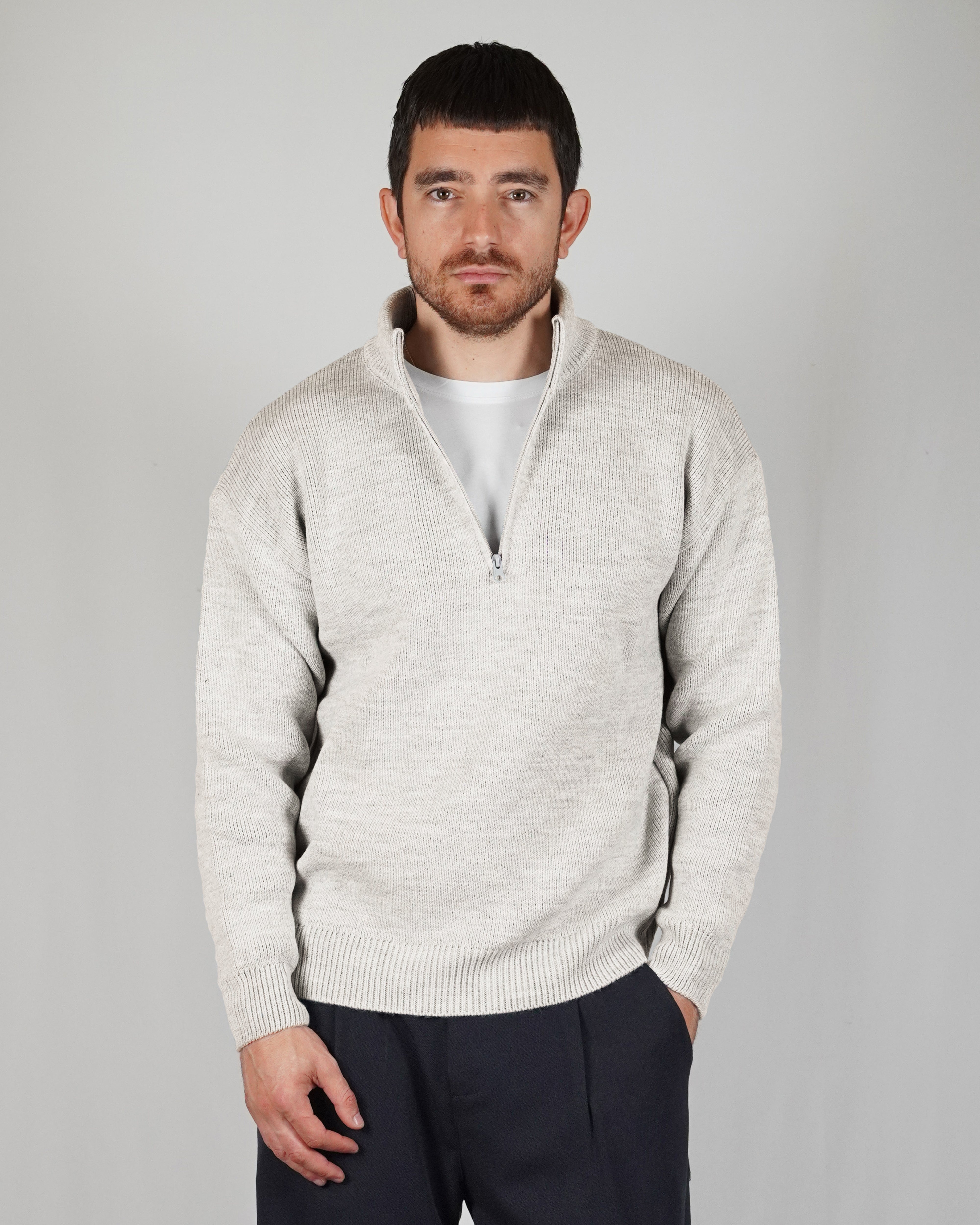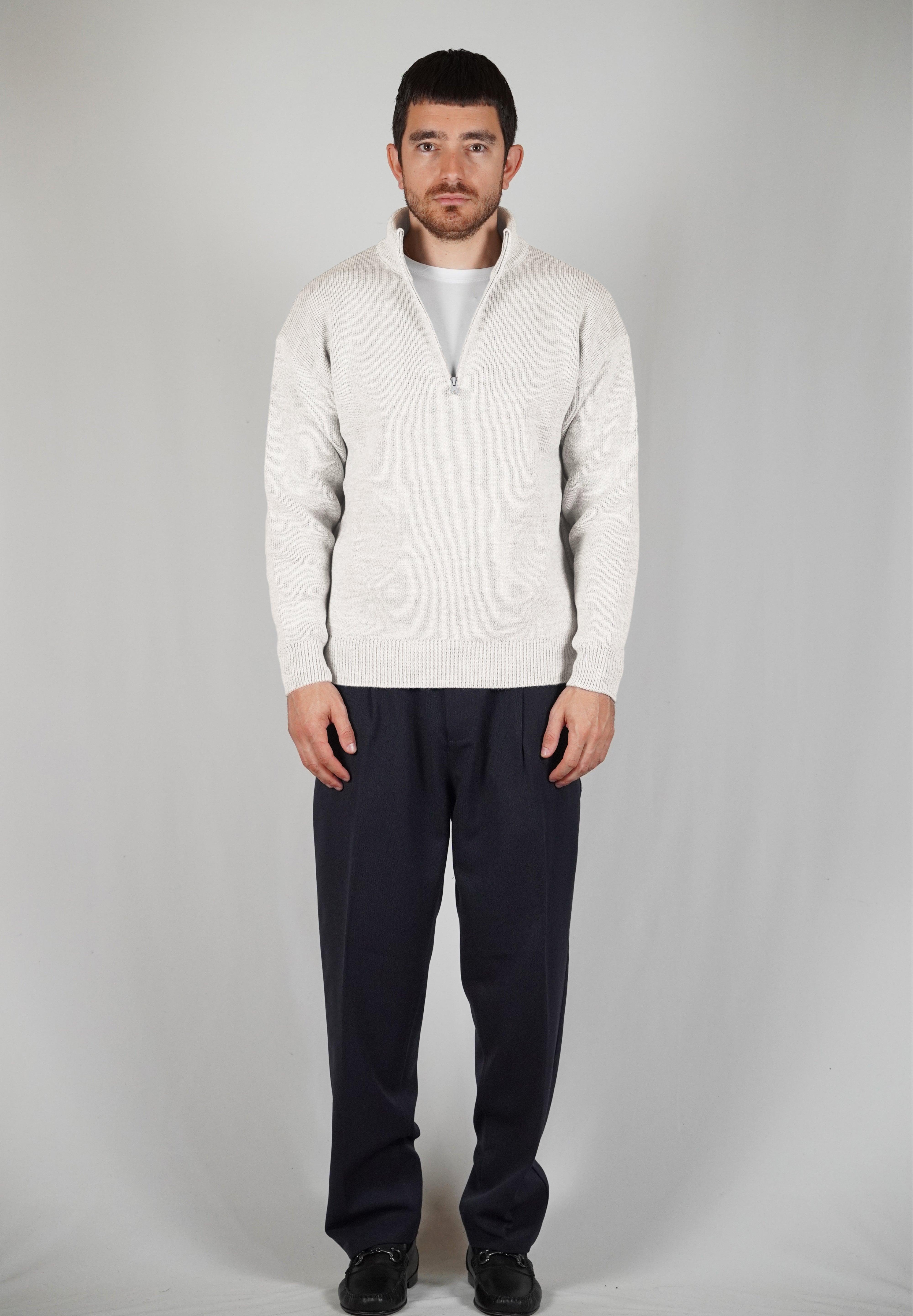 The sand color gives refinement to the garment. The breaks on the ends of the sleeves and on the give it dynamism. The regular, soft volume marries perfectly with the weight of the wool that composes it.