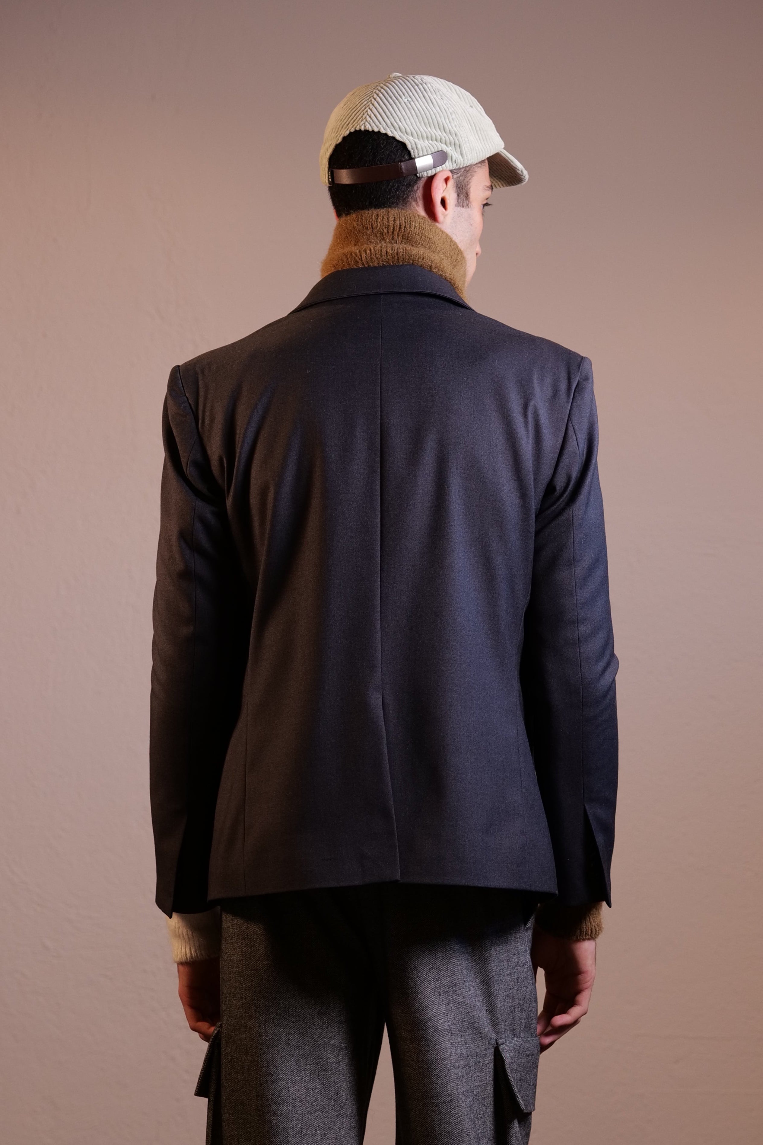 Blazer monopetto elegante e raffinato, il color antracite rappresenta un evergreen in questo articolo. Il dettaglio del bottone con incisione della iconica lettera ‘B’ di Benevierre posizionato sul rever sinistro della giacca rendo questo capo unico.