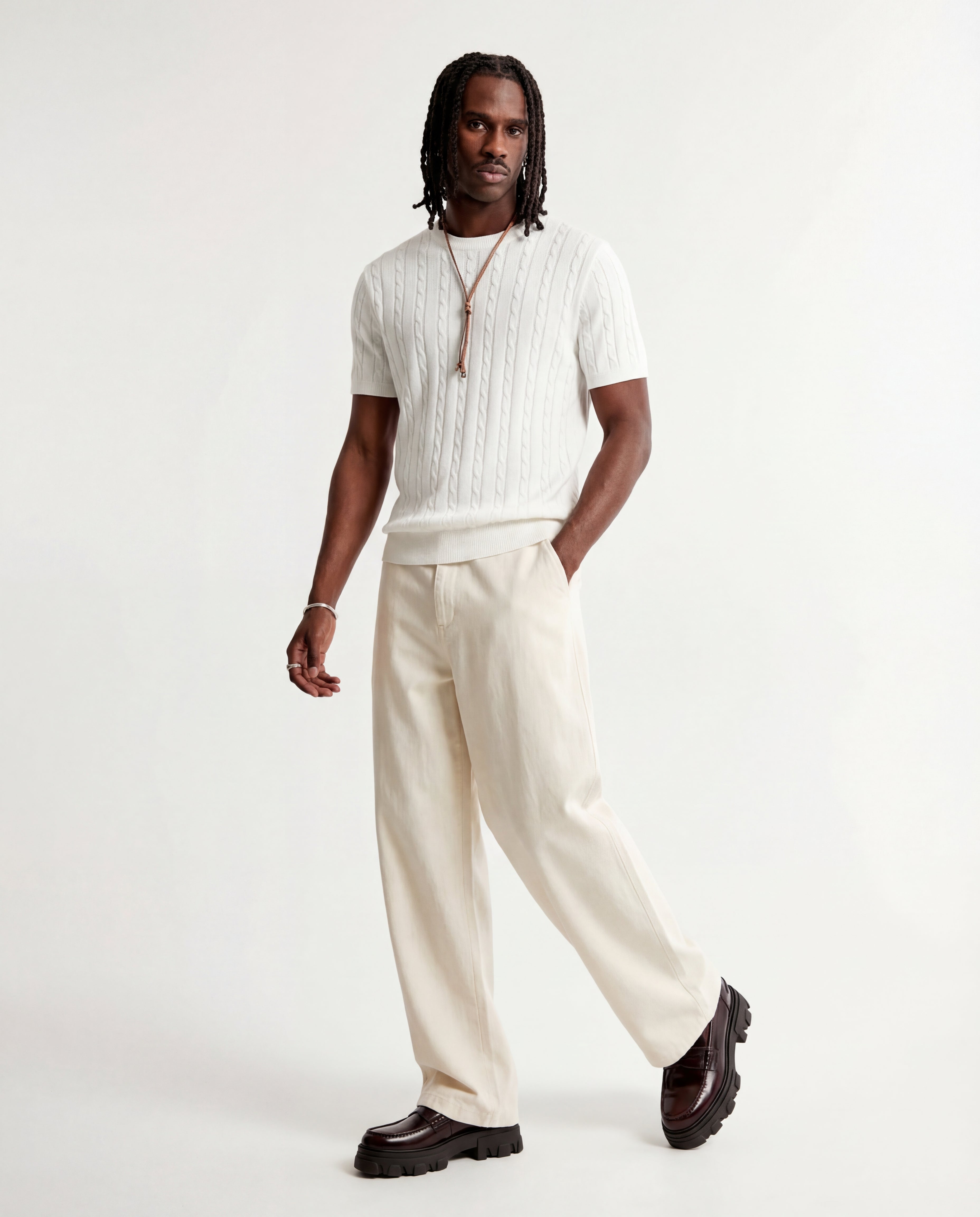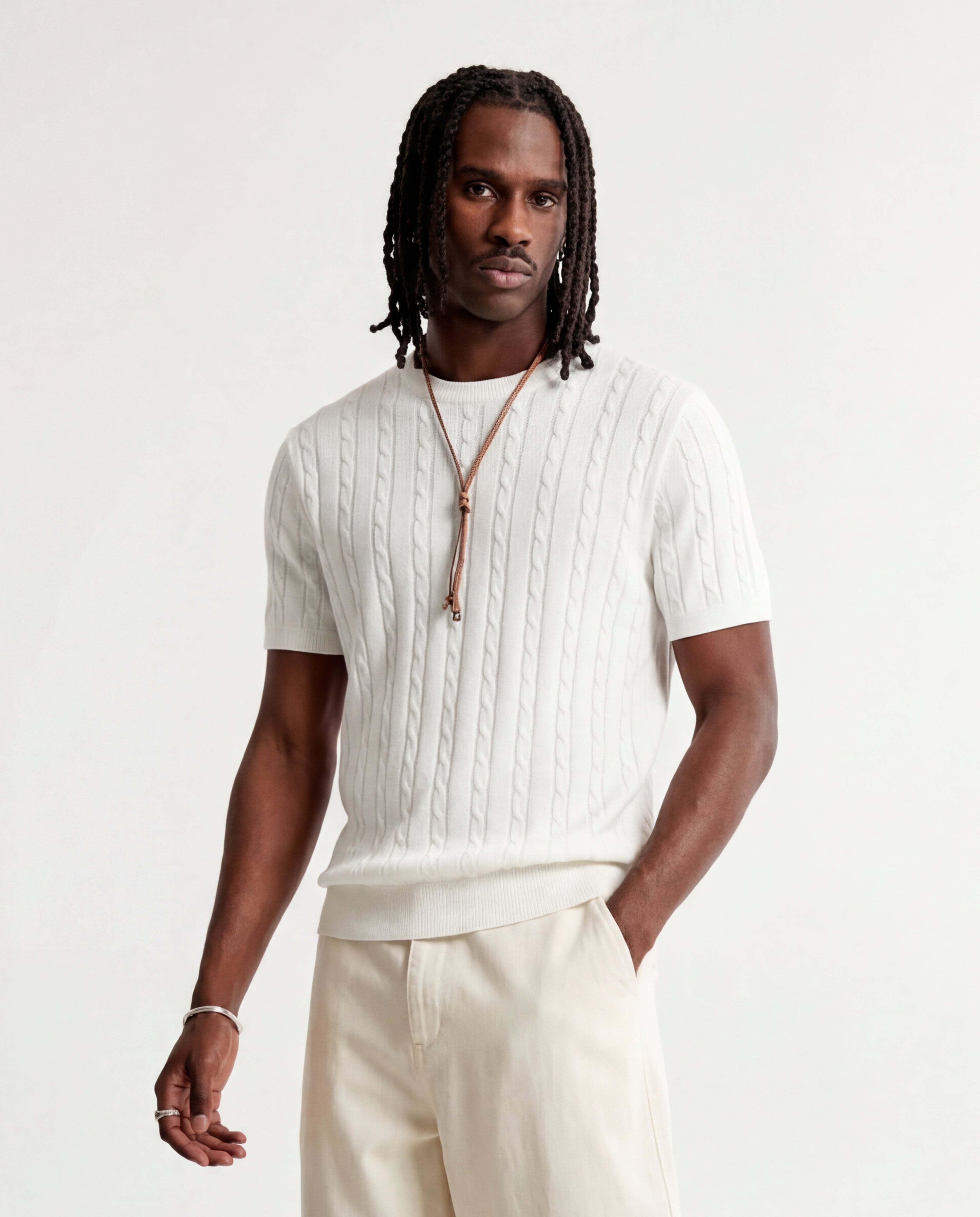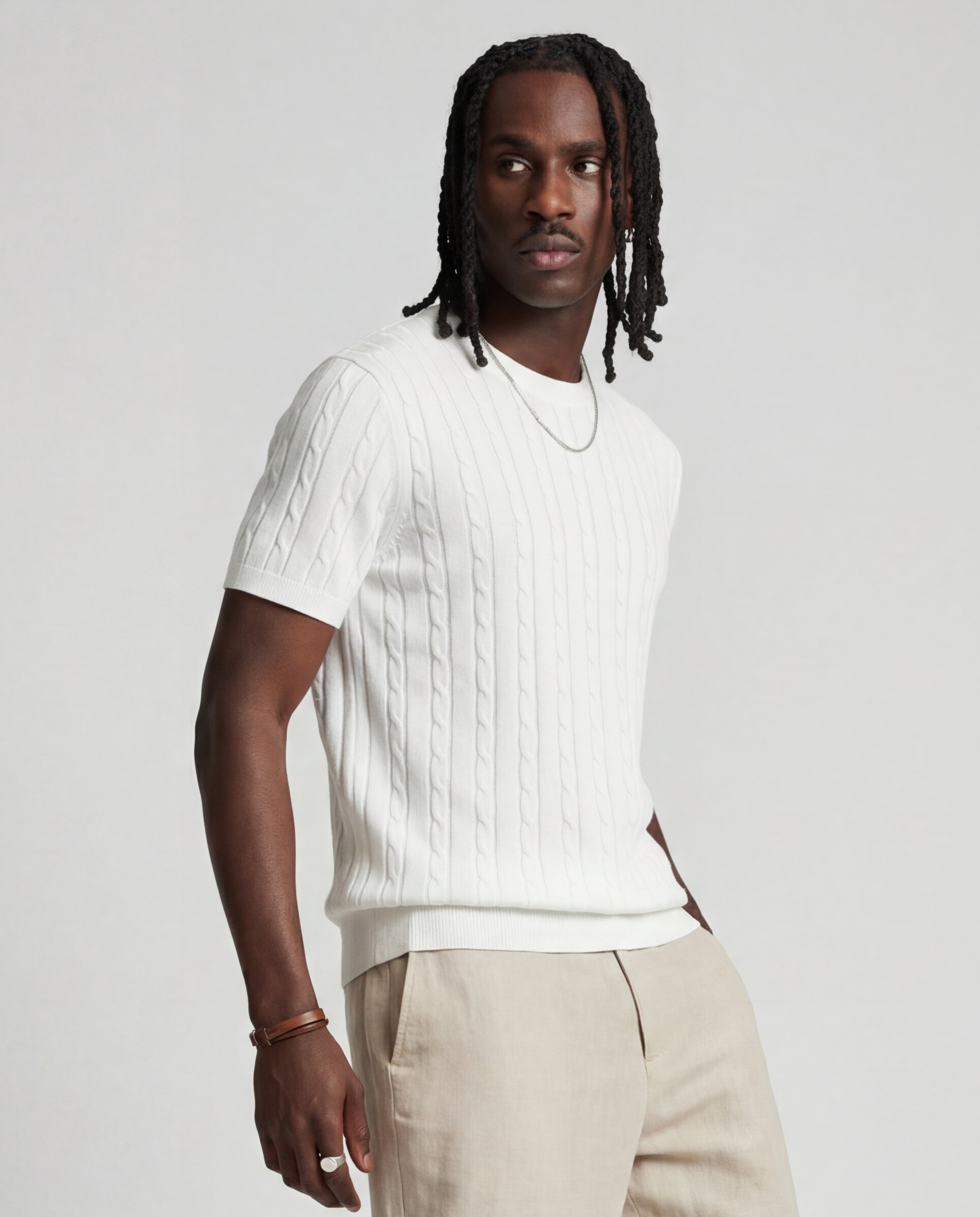 LINEAR KNITTED TEE WHITE