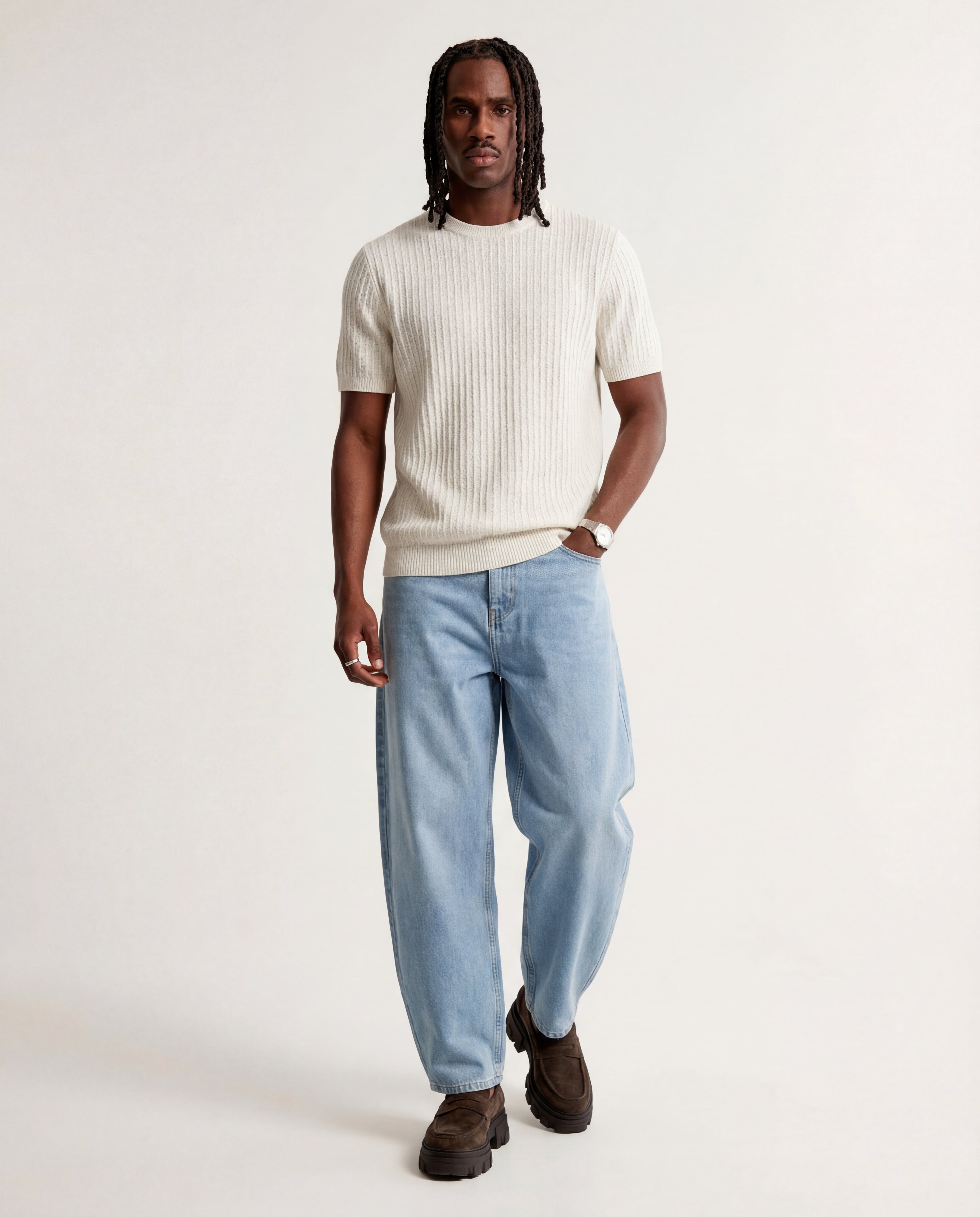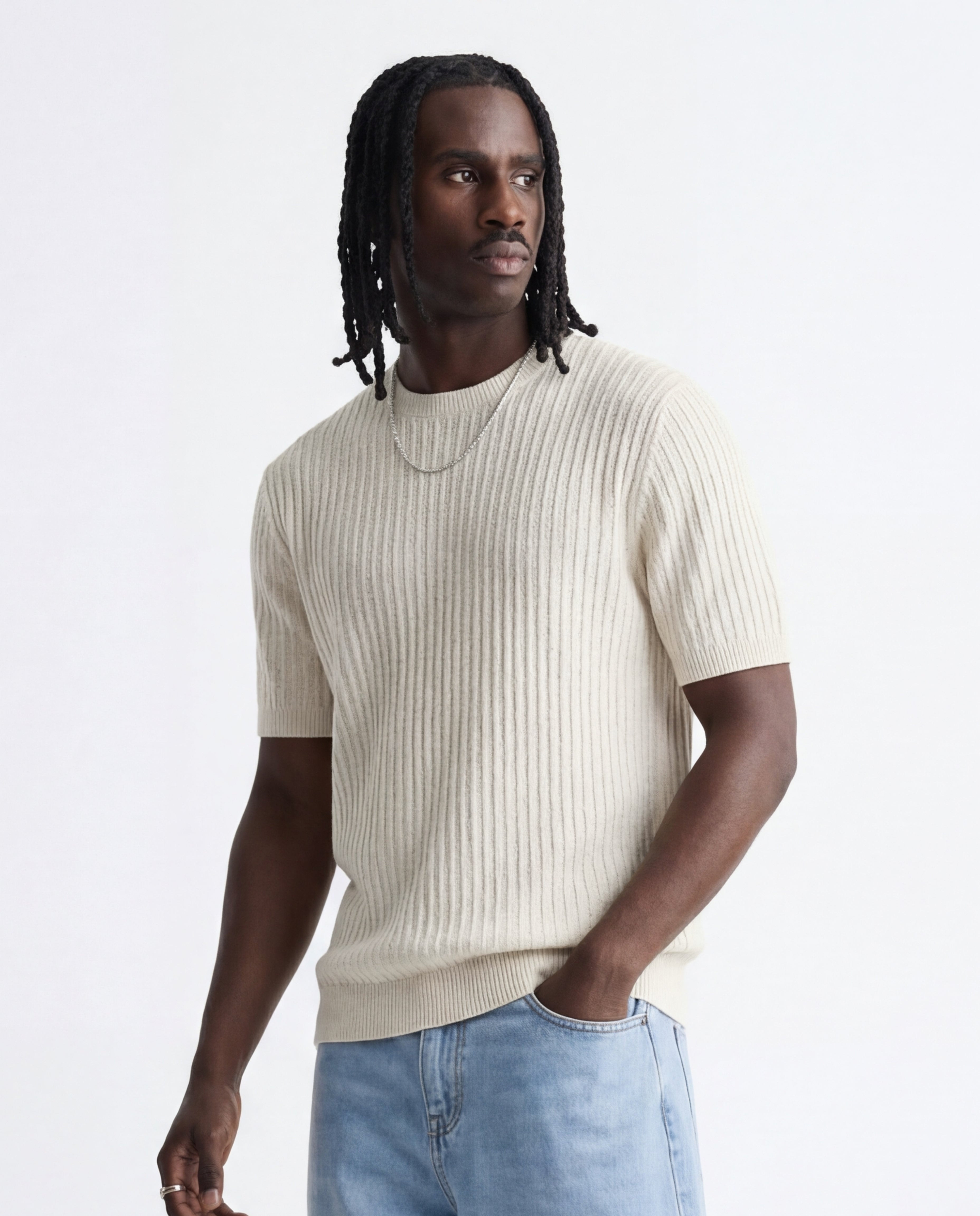VERTICAL KNIT TEE WHITE